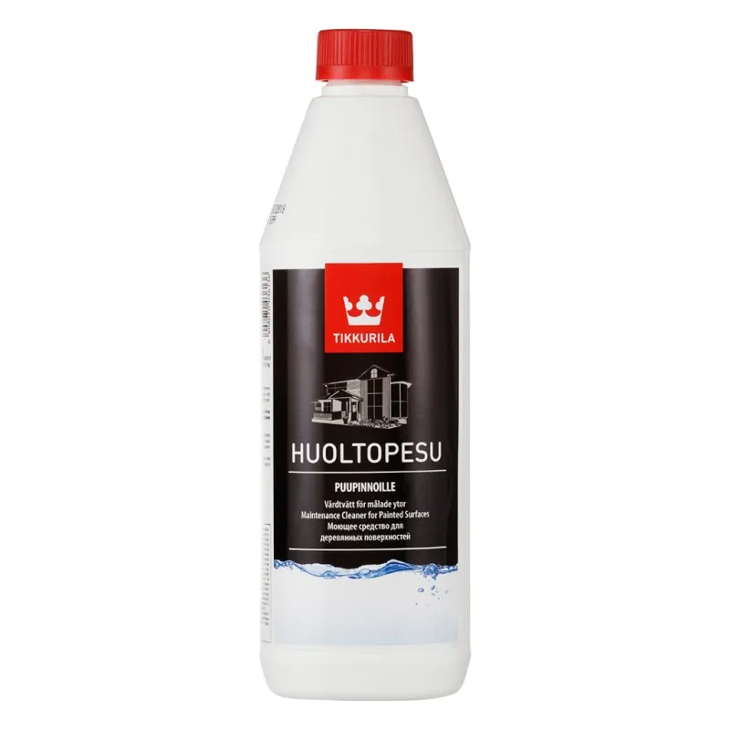 Huoltopesu detergent cleans wood, metal, plaster, concrete, and plastic surfaces both indoors and outdoors, whether painted, stained, or untreated. An ideal universal cleaner.