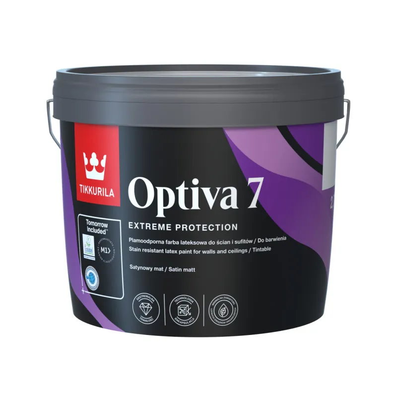The newest generation, satin - matt, waterborne, stain resistant, latex acrylic-composite paint for tinting. Used in the paint modern encapsulation technology increases the barrier properties of painted surface. For decorative painting of walls and ceilings inside residential, office and public use buildings and in schools and health care premises (hospitals, schools, kinder-gardens, hospitals, clinics, offices, operating rooms, treatment rooms, laboratories, dialysis stations, etc.), workhouses and production plants and also food industry without direct food contact.