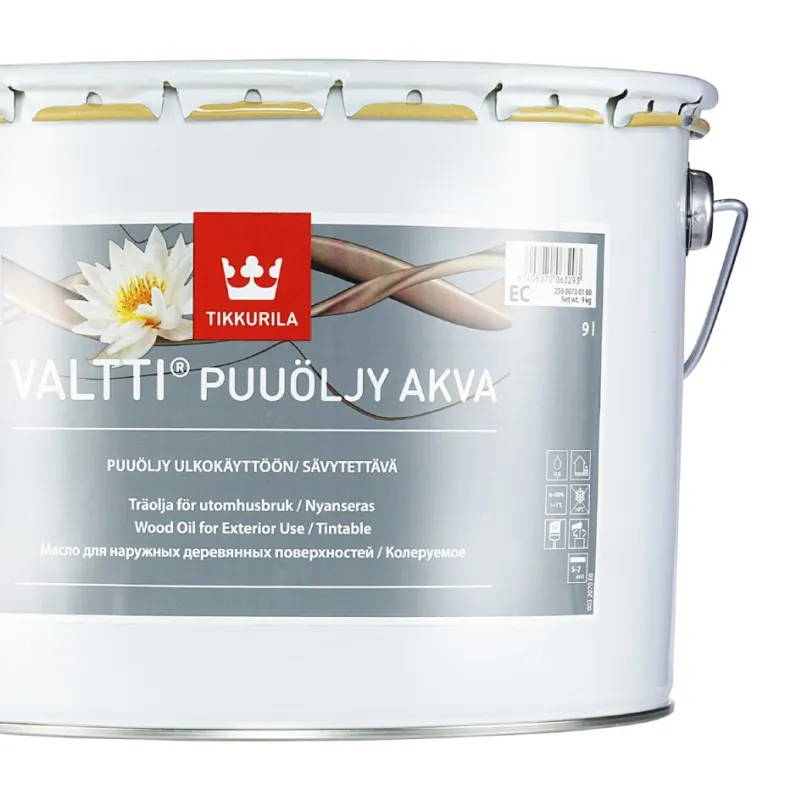 Valtti Puuöljy Akva is suitable for both previously oil-treated and new terraces, jetties, stairs, and garden furniture. It is also suitable for all wooden surfaces from impregnated wood to hardwood.