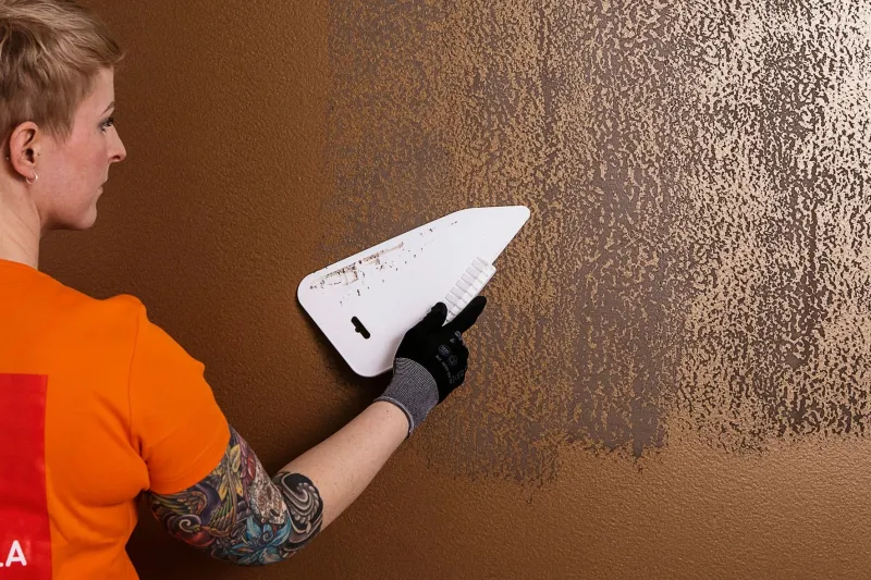 Even the wet Tunto Hieno out lightly with a wallpaper spatula by using vertical strokes.