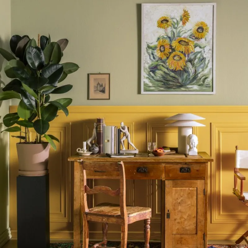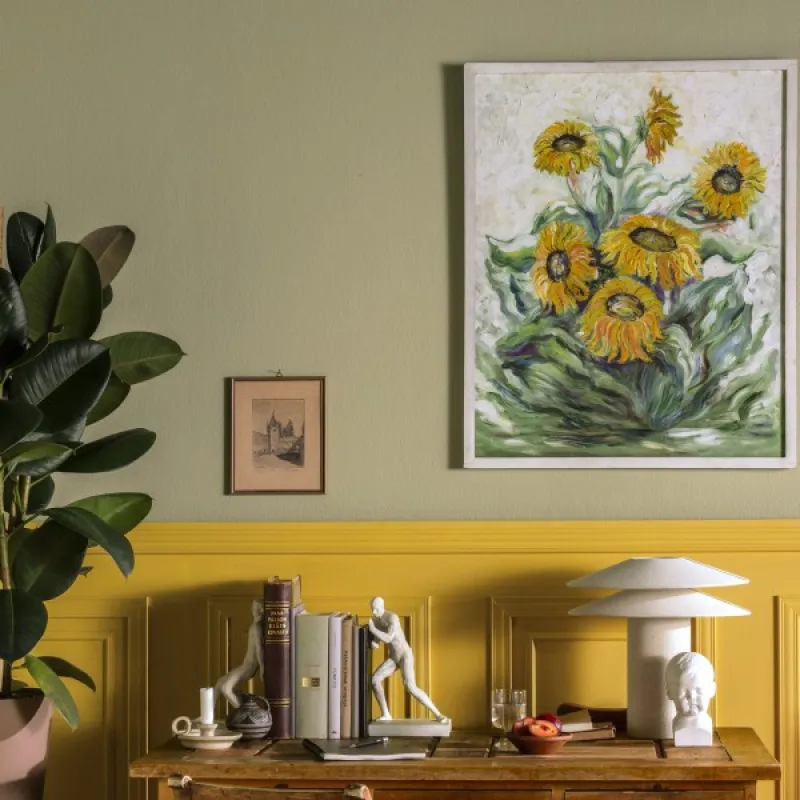 The light filters beautifully through the leaves of an olive tree. A broken green shifting to yellow attracts the gaze. Use the colour to create a harmonious atmosphere.