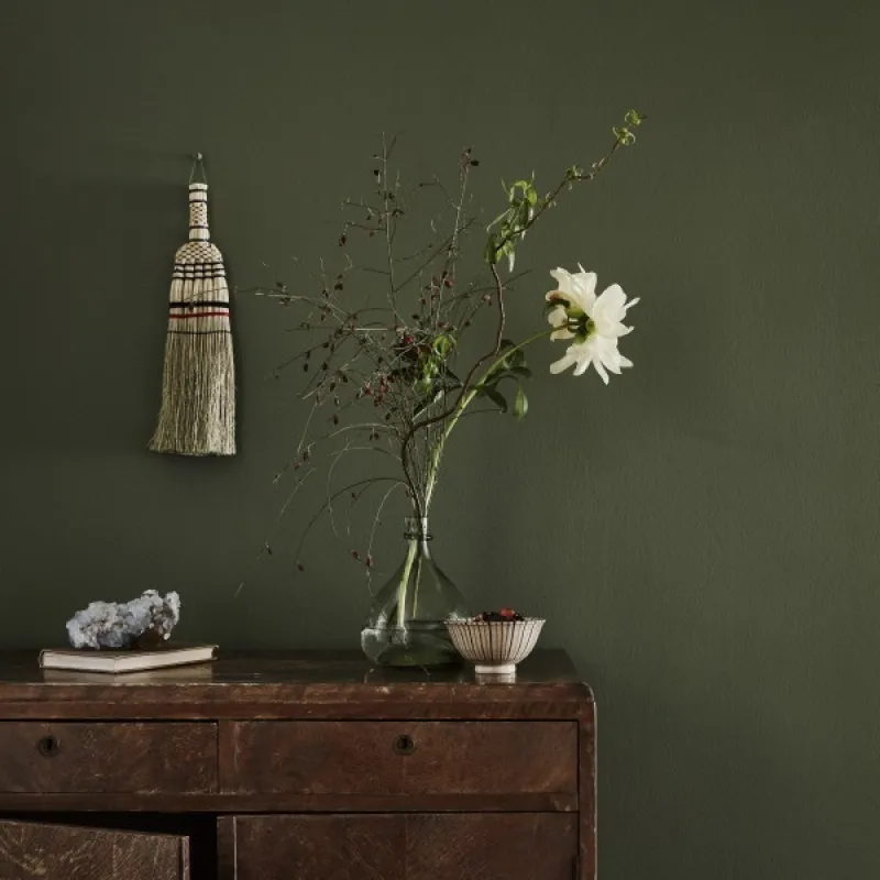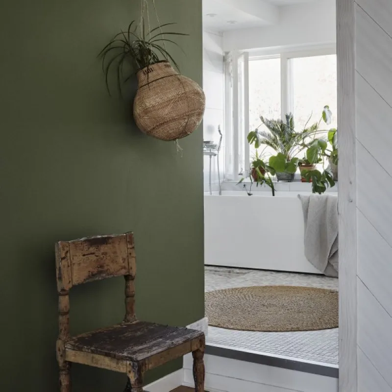 Green, delicate leaves surrounding a flower bud. Sepal is the perfect mid green shade to bring some character to your walls.