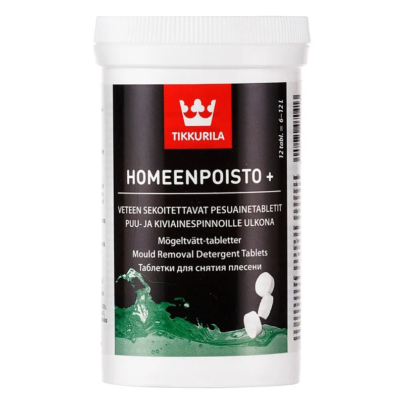 The Homeenpoisto Mold Removal Tablets are easy to dissolve in water for just the right amount of cleaning solution you need. The remaining tables will keep well in dry conditions until the next use.