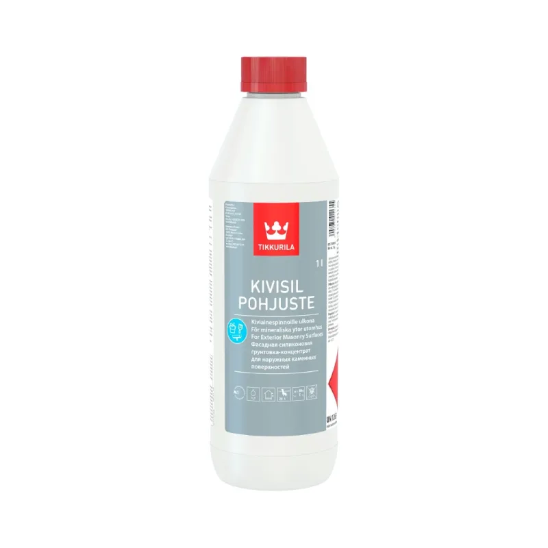 For priming porous, water-absorbing unpainted surfaces or previously painted aggregate surfaces before painting with Kivisil façade paint, Finngard Silikonihartsimaali or other paints suitable for organic aggregate surfaces, such as Yki.