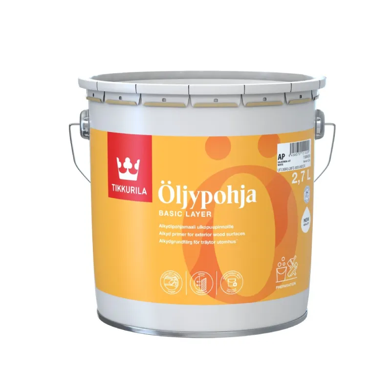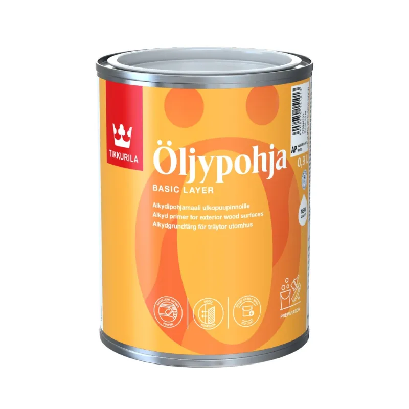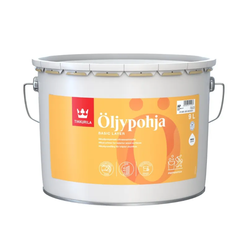 This classic primer creates good adhesion to new factory-primed and old bare wood surfaces before painting with house paints. Öljypohja is also suitable for painting surfaces previously treated with oil paint.