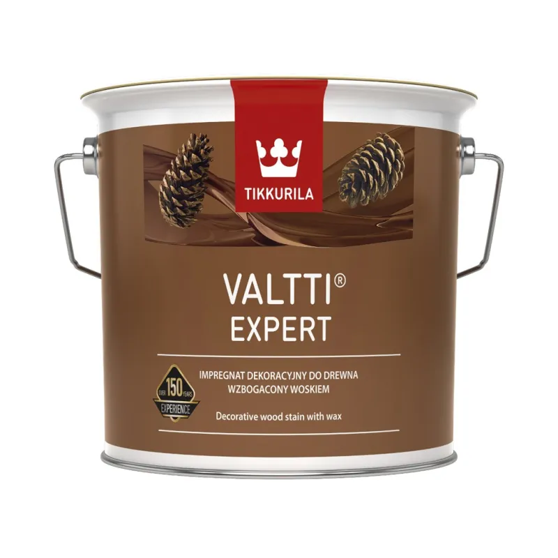 Up to 20 m2/l (per one coat for smooth wooden surfaces, depend on the type and humidity of wood). In case of painting raw wood, which wasn’t painted previously it is recommended to apply approx. 150-180 g/m2 Tikkurila Valtti Expert, in case of renovation of wooden elements apply approx. 90-120 g/m2.